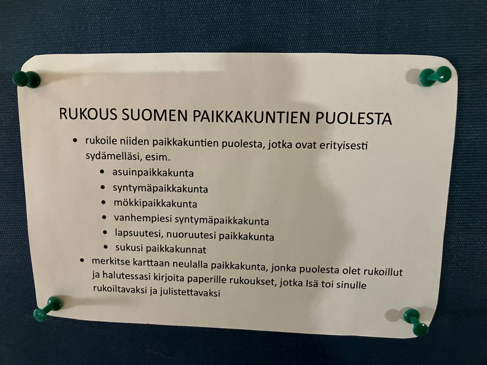 Katkeamaton 24/7/375 rukous Suomen ja paikkakuntien puolesta.